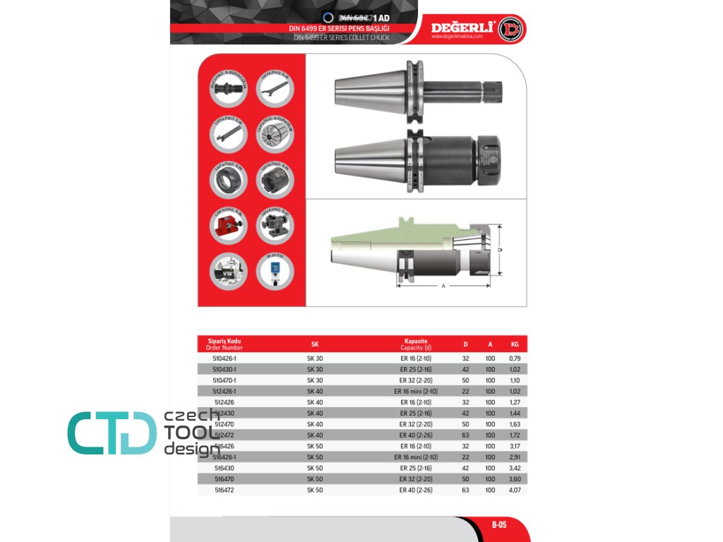 Kleštinový upínač ISO40 / ER32, délka 70 mm