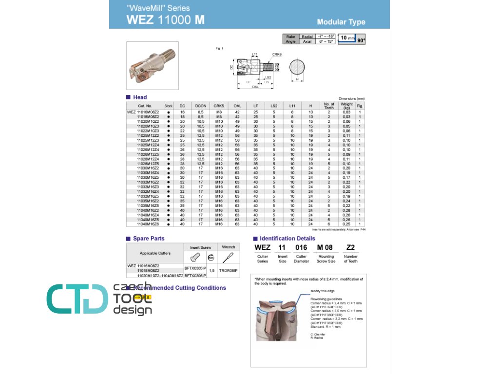Modulární rohová fréza WEZ -Sumitomo - AOMT 11T3..PEER