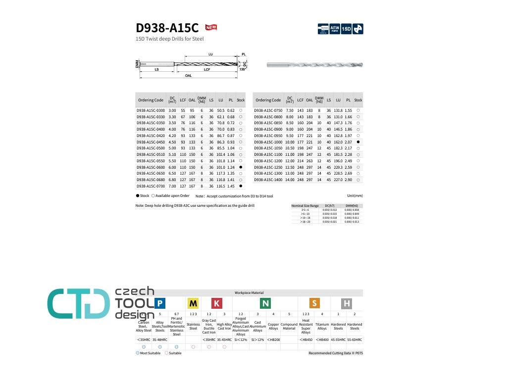 TK vrtáky 15xD s vnitřním chlazením - GESAC